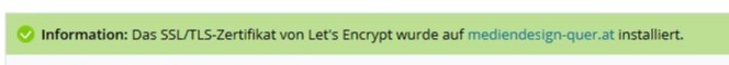 Wenn alls gut geht, erhältst du eine Bestätigung, das Let`s Encrypt erfolgreich installiert wurde.