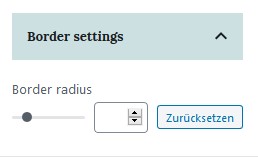 Unter Border Radius versteht man den Rand, die Umrandung des Buttons. Mit Border Radius kannst du den Rundungs Radius deines Buttons Blocks bestimmen.