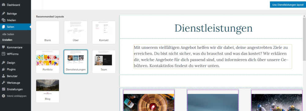 Das Plugin ist von Automattic, also von WordPress Machern selber. Die Layouts funktionieren einwandfrei. Man braucht sie nur mit eigenem Bild und Text dann anpassen. Alles im WordPress Block Editor.